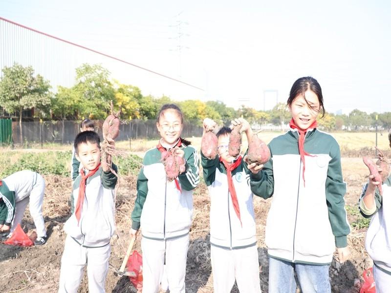 此外,同学们还亲身体验了一次农活工具的使用,扎麻绳、碾稻米、挖红薯等等,无处不充斥着同学们的欢声笑语。从劳动中体会收获的快乐,是每个同学在这次朱家浜社会实践中获得的最大感受。