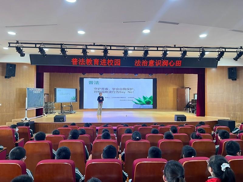 为了加强校园安全管理,提高少先队员的法律意识和法治素质,营造一个“学法、懂法、守法、用法”的校园氛围,2023年11月29日,震泽实验小学邀请了江苏新涛律师事务所孙静律师,开展了以“守护青春,学会自我保护”为主题的普法讲座。
