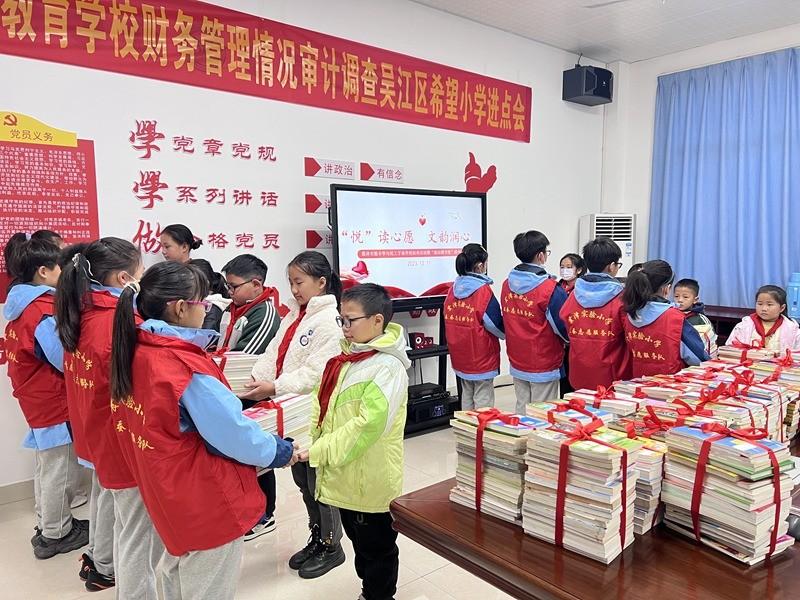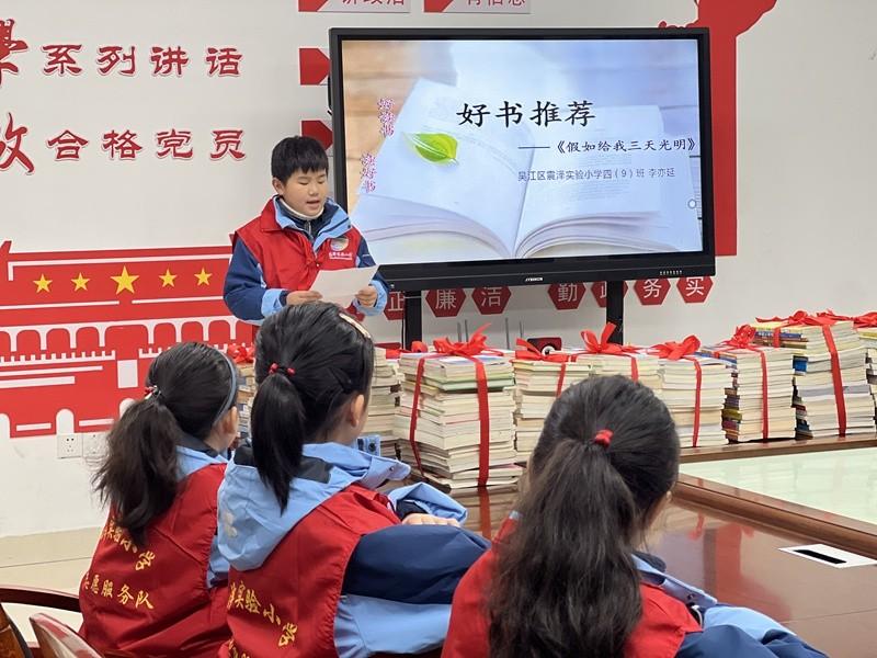 每本书都是一个世界,闲置在角落的书,也有温暖的力量。为了让更多孩子们享受阅读之美,2023年12月11日,震泽实验小学少工委组织红领巾志愿者来到震泽希望小学,开展以“‘悦’读心愿,文韵润心”为主题的志愿者捐书活动,为民工子弟学校的孩子建立班级“流动图书角”。
