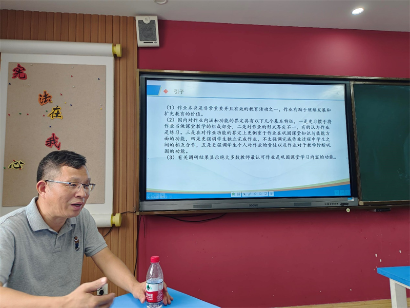 李新校长从不同领域为老师们分享了高质量作业设计案例,他指出确定课堂作业目标要从整体定位,课堂作业内容要用好教材习题,课堂作业实施要设计随学作业,课堂作业评价要注重解题过程,同时为老师们指出课堂作业设计的误区,老师们要重视教材习题,重视解题过程,重视动口和动手的作业,重视对知识本质的理解,重视习题中的反思提炼,重视学生发现和提出问题的能力,重视真实复杂非常规情境创设习题的教学。