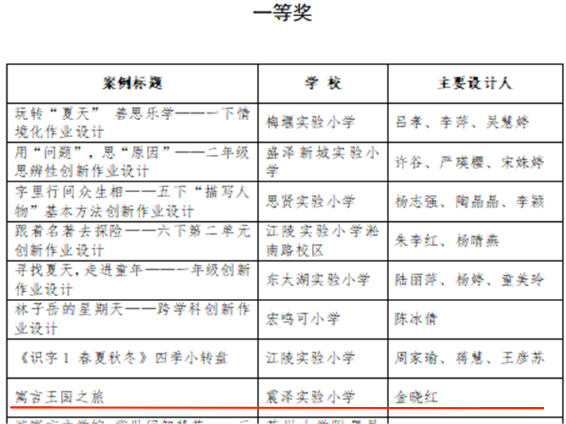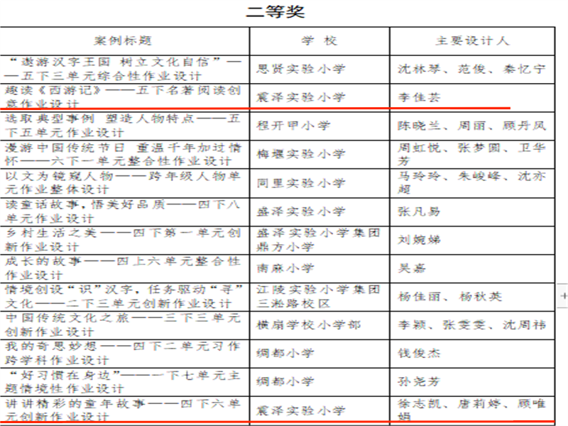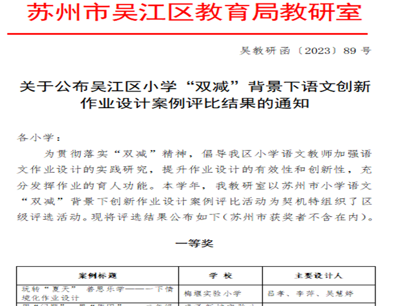 我校教师在吴江区小学“双减”背景下语文创新作业设计案例评比中获奖