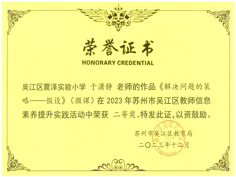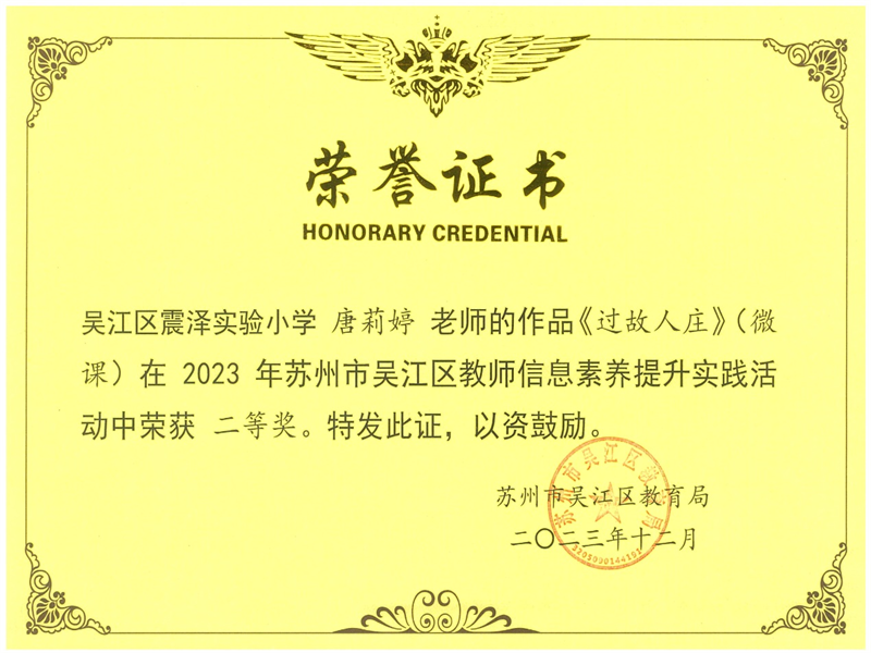 我校老师在2023年苏州市吴江区教师信息素养提升实践活动中获奖