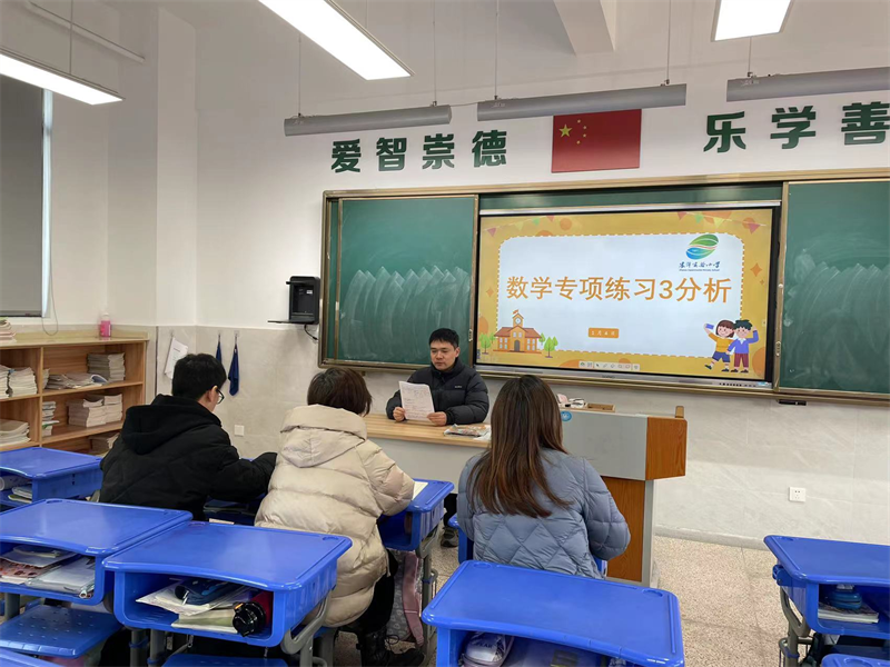 接着数学年级组老师们针对专项作业3的练习情况进行了讨论。他们分析了学生在本次练习中存在的问题,如理解不透彻、解题思路不清晰等。同时,老师们也发现了自身在教学中的不足之处,如讲解不够详细、示范不够清晰等。大家纷纷提出了改进的意见和建议,包括增加讲解的例题数量、提供更多的解题思路等。
