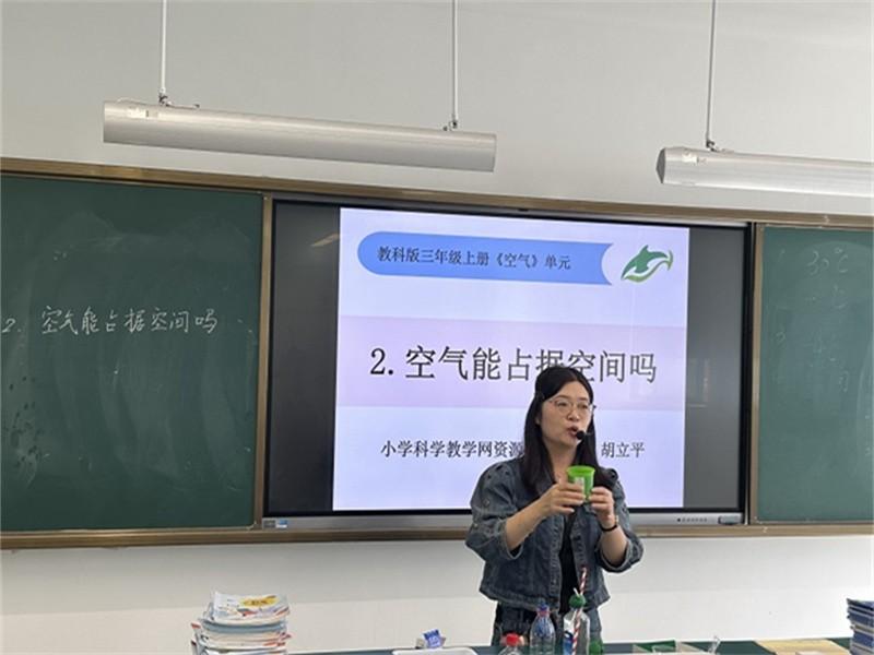 首先,吴建红老师开设公开课《空气能占据空间吗》。本节课吴建红老师让每位同学都亲自动手参与活动,激发了学生学习的欲望与兴趣。在教学过程中给学生充分的研讨时间,就某一问题的出现让学生之间质疑、解决问题,让学生在生生互动中去获取知识。