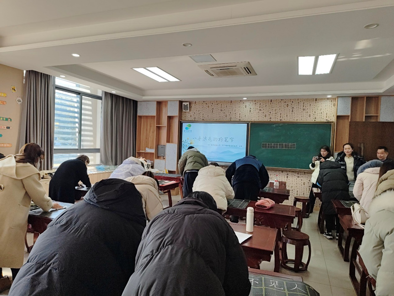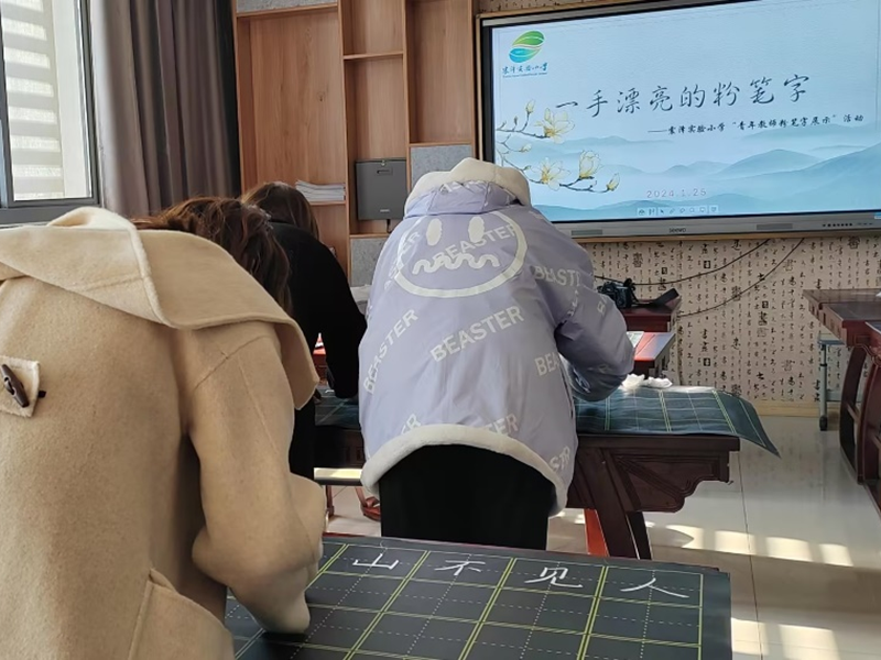 1月25日上午10:50,一手漂亮的粉笔字——震泽实验小学“青年教师粉笔字比赛”在爱智楼二楼的书法教室和美术教室举行。青年教师们全神贯注,用心书写每一个汉字。教师们在书写过程中,不仅展现了扎实的书写功底,更体现了对汉字结构的深入理解和独特审美。他们通过一笔一划,传递着对中华文化的热爱和敬意。