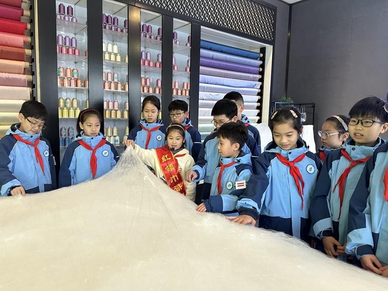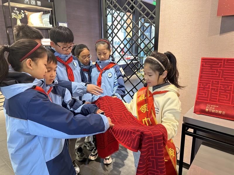 一条登上春晚舞台的“吴江红”——“祥龙腾飞”的红围巾,成为了2024年新春喜庆氛围的穿搭神器,而这条红围巾正是出自我们吴江的太湖雪公司。2月20日上午,震泽实验小学红领巾寻访小队的队员们来到震泽太湖雪桑蚕园,在红领巾讲解员的带领下,参观展厅。队员们仔细看,用心听,亲手触摸,无不感叹着这条红围巾的独具匠心。