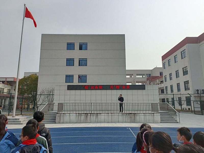 升旗仪式上,杨志华校长向全体少先队员介绍了爱绿护绿的重要性,号召队员们争做绿色的文明使者。