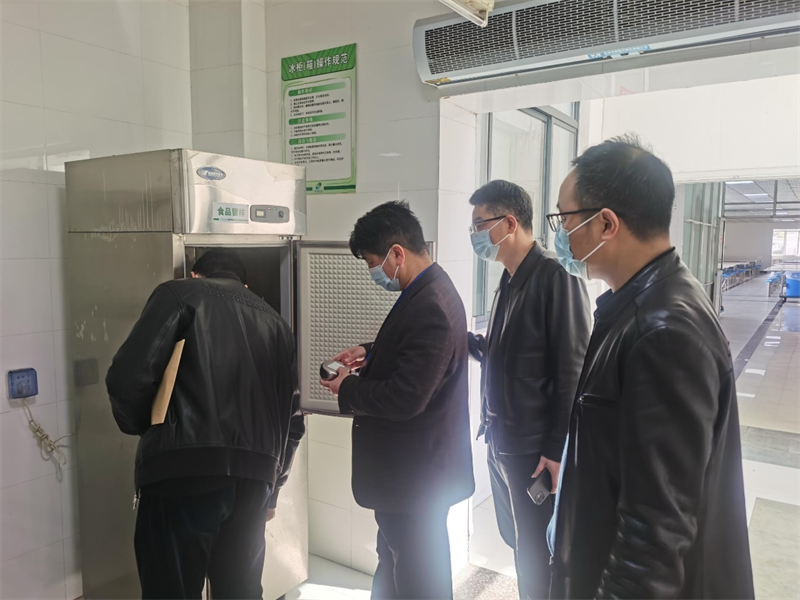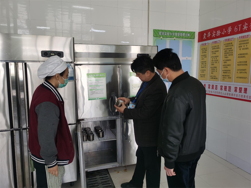 在副校长屠金良、陈春华和办公室吴智慧主任的陪同下,来到食堂,查看食品安全情况,查看食品安全总监、食品安全员信息、从业人员健康证、每天的食品留样情况、餐用具清洗消毒情况及陪餐制度等。