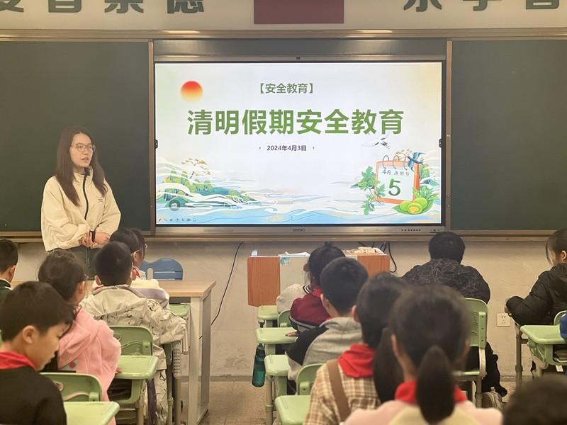 班会课上,老师带领学生一起学习了清明期间交通安全、居家安全、饮食安全、防溺水安全、预防意外伤害等知识,并向同学们发出了文明绿色祭祀的倡议以及防范各项安全注意事项的提醒,希望家校合力,共同营造一个文明健康、节俭环保、安全有序的祭扫环境。
