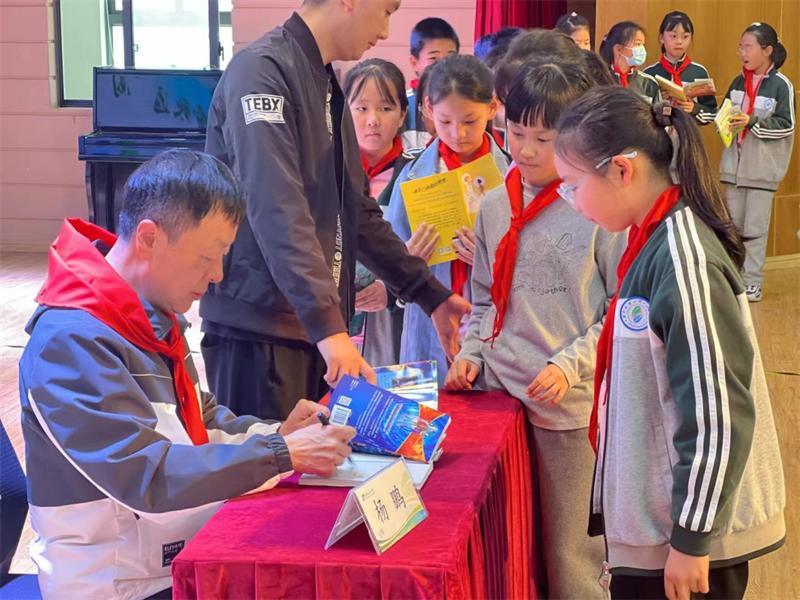 活动中,杨鹏与小读者分享了自己的创作历程,以及他作品中的精彩内容。他从自身经验和课外阅读出发,分享了想象力对一个人成长的重要意义。演讲中,他通过各种形式的密切互动,让孩子们体会到想象力的无穷魅力。他特别倡议孩子们要站得更高看得更远,要敢于想象,大胆想象。演讲结束,现场孩子们都深受鼓舞,他们热情地请杨鹏签名留念,并争相与他合影。