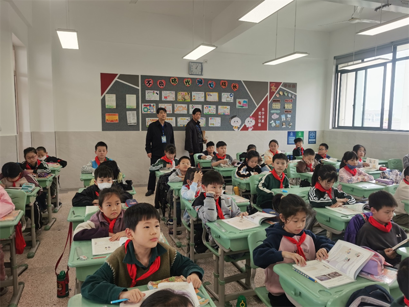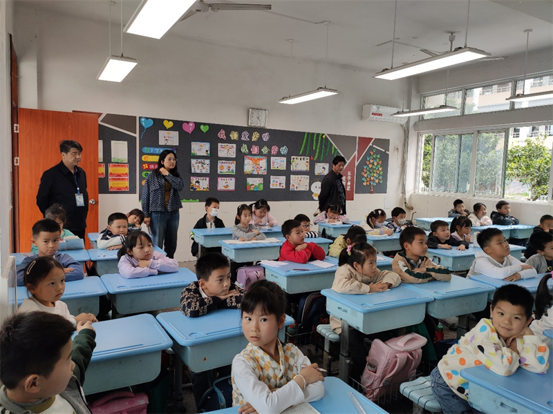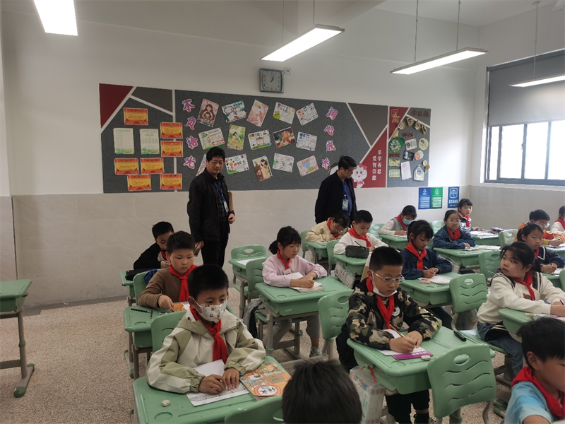 两位督学到校后,踏看校园,实地查看校园安全、卫生情况;查看垃圾分类实施情况,关注集中点垃圾投放规范情况,抽查教室、办公室,查看分类投放正确情况;走进教室,进行“课堂观察”,关注师生的教与学的活动与行为,察看班级文化,关注教室黑板报内容。