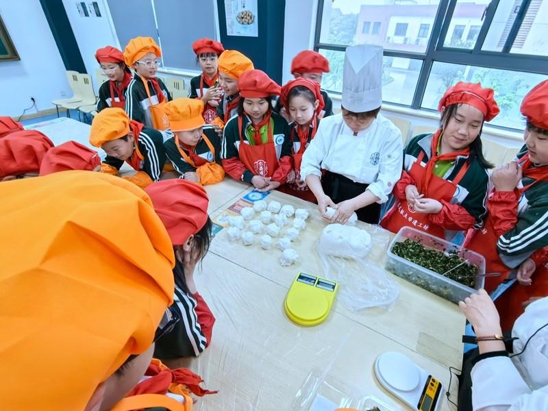 4月30日,震泽实验小学的“小娃大课”活动邀请到了苏式糕点非遗技艺大师、吴江震泽古镇老店“仁昌顺”传承人陆小星来教小蚕宝们制作香青菜团子。