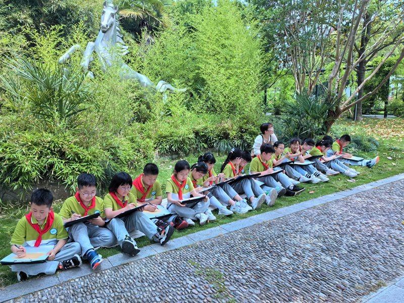 在阳光明媚的初夏,三8班和三9班的同学们来到了风景如画的震泽公园,开展了一场别开生面的线描写生研学活动。此次活动旨在让学生们通过实地观察和写生练习,提高绘画技巧和观察能力,同时感受大自然的魅力。