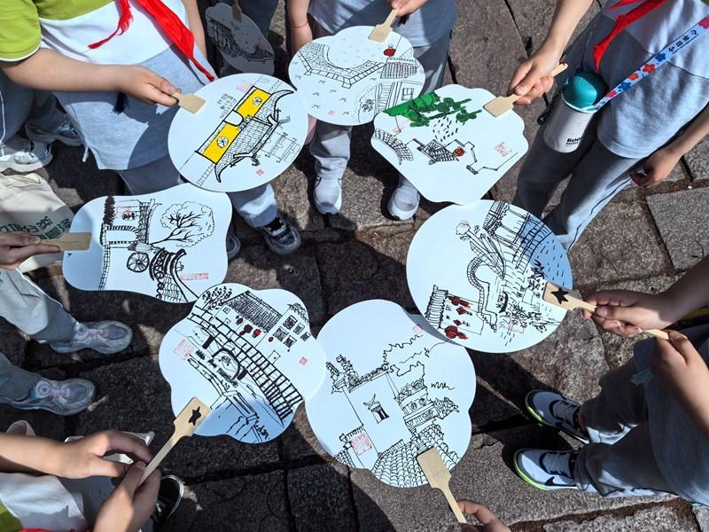 活动当天,同学们在老师的带领下,来到了禹迹桥旁。这座古老的石桥横跨在河流之上,桥身古朴典雅,桥栏上雕刻着精美的图案。同学们用心观察桥身的结构、桥栏的图案以及桥下的流水,努力将这些细节呈现在画纸上。