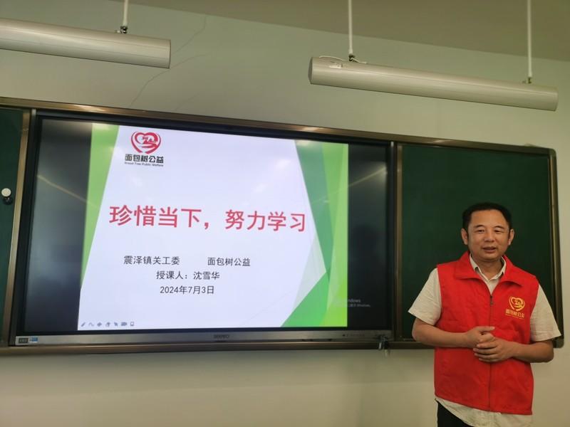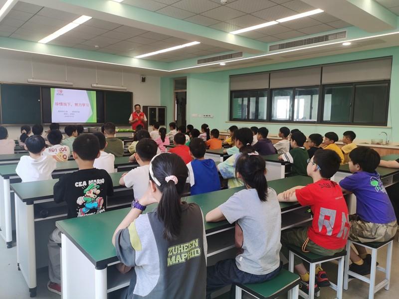7月3日,震小关工委假日学校组织同学们参加了一次“珍惜当下 好好学习”的讲座。讲座现场,关工委沈雪华老师首先播放了一首由山区同学用贵州方言演唱的儿歌。同学们的视线一下子就被拉进了讲座课堂当中。紧接着是一张张的山区同学们日常生活与学习的照片,这些照片都是沈雪华老师亲手拍的,沈老师无论是讲述照片,还是提问问题,整个人都是声音高昂,情绪饱满。也正是因为沈老师这样高度投入的状态,同学们也都全身心的沉浸在讲座当中,举手回答问题的同学们一个接着一个。