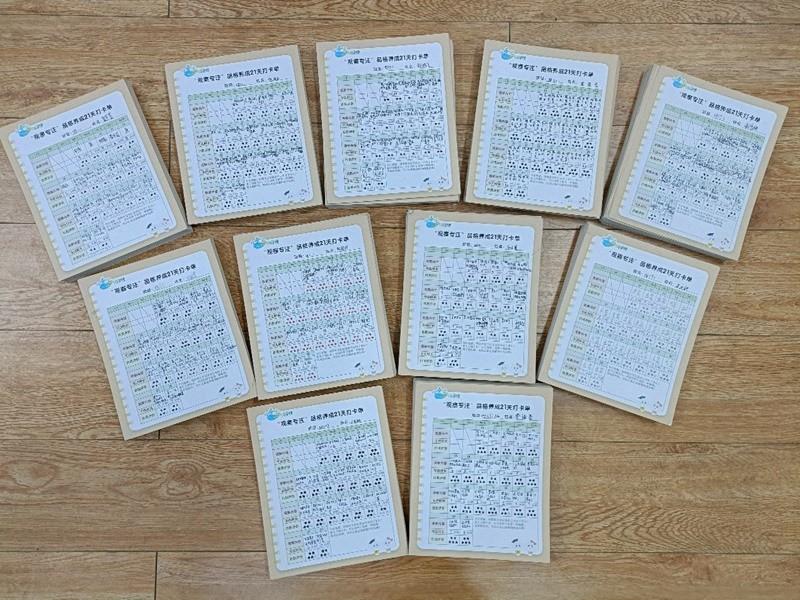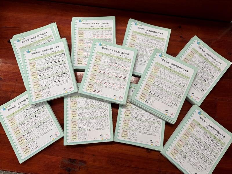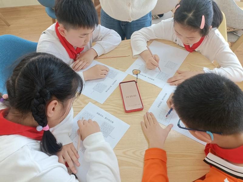 三、四年级各班开展专注力训练,倡导孩子们在学校、在家里通过舒尔特方格、分豆豆、杯下寻物等专注游戏训练专注力,让孩子在游戏中“玩”出专注。