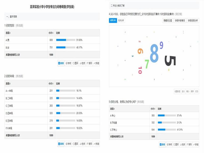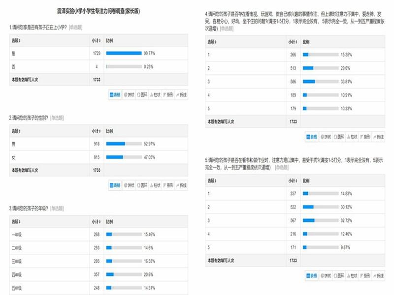 聚焦专注,调查先行,问卷调查活动主要分成两个板块,通过学生填写《震泽实验小学学生专注力问卷调查(学生版)》,了解学生的基本情况和培养专注力的需求,使学生明白专注力的重要性。通过家长填写《震泽实验小学学生专注力问卷调查(家长版)》,多角度地了解在家小学生专注现状。