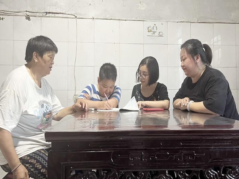 家访过程中,老师、家长、学生围坐在一起,敞开心扉,针对不同学生的学习表现,老师们给出个性化的学习指导,提醒学生按时完成暑假作业并适当参与家务活动、体育锻炼和社会实践活动。