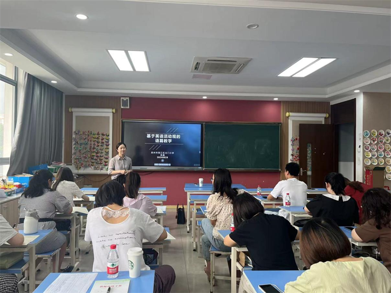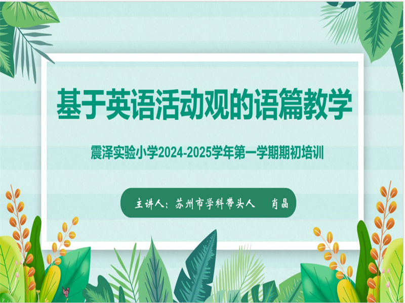 2024年8月28日,来自吴江区北门小学的肖晶校长给我校英语组全体教师带来了一场主题为《基于英语学习活动观的语篇教学》的高质量培训活动。讲座内容主要涵盖以下三个方面:英语学习活动观的内涵界定、基本特征及实践路径。