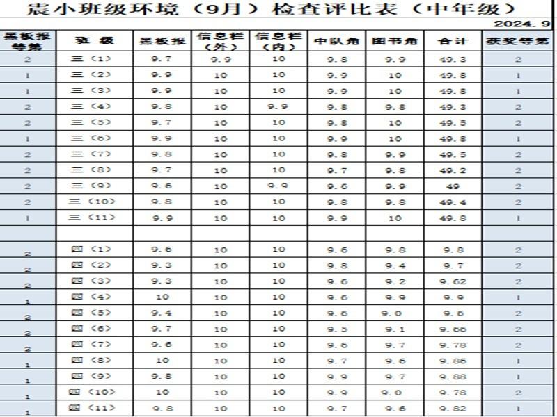 9月14日,由德育处成员组成的检查组对各年级各班不同的主题黑板报进行了检查并打分评比。各班黑板报内容紧扣主题,内容丰富、版面设计新颖、版式排版合理、色彩搭配协调,给人一种美的享受,显示了师生们对此次黑板报比赛的重视。