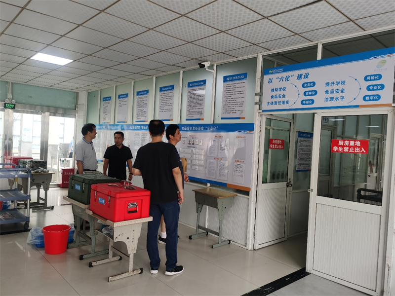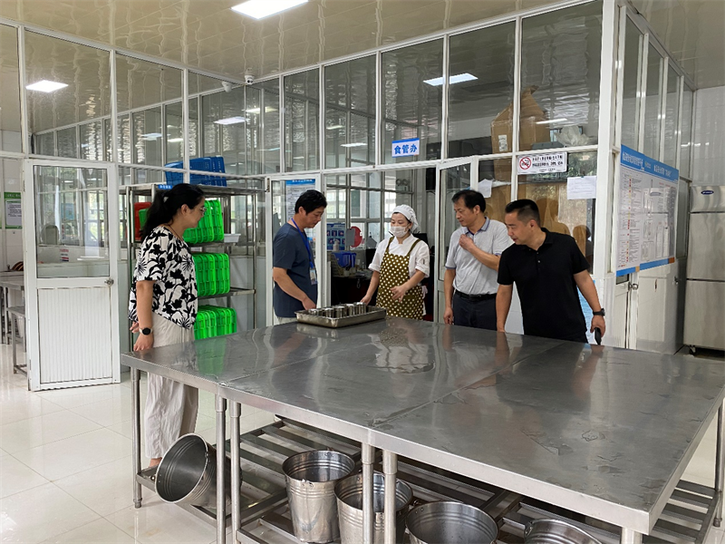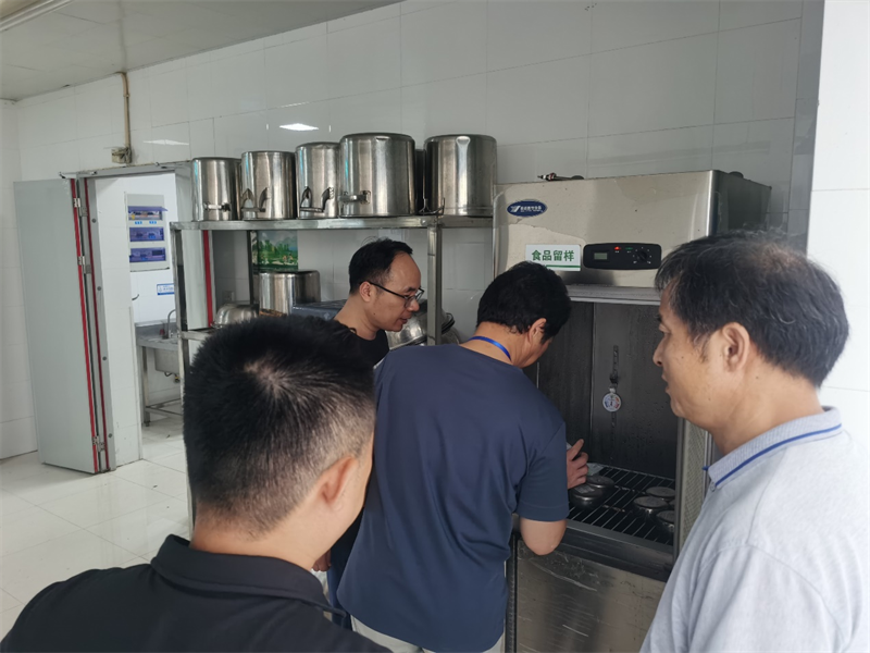 走进食堂,查看现场,了解食堂就餐安全情况、食品安全制度落实情况。查看了学校食堂就餐区域桌椅、地面、餐具和炊具的卫生、清洁消毒情况、食品留样情况;查看食品查验记录、库房管理情况及陪餐制度落实情况。
