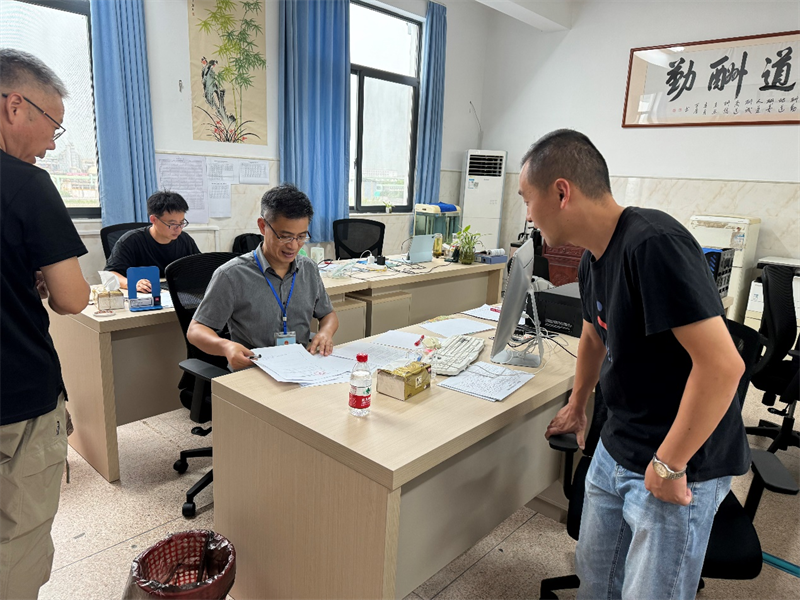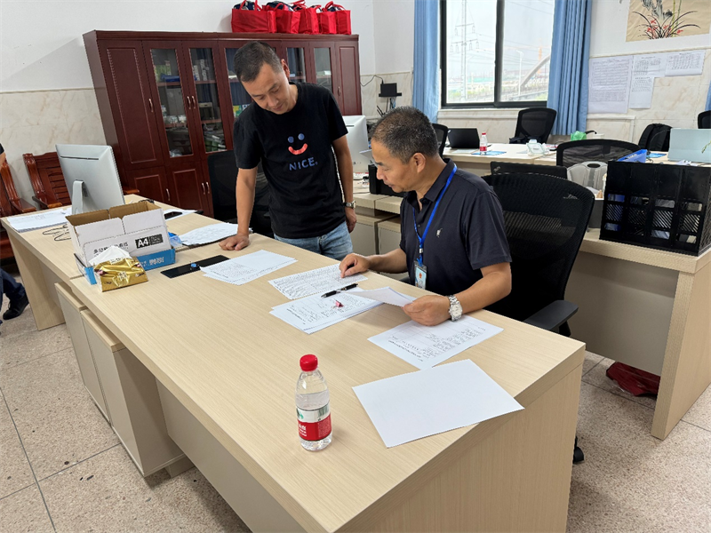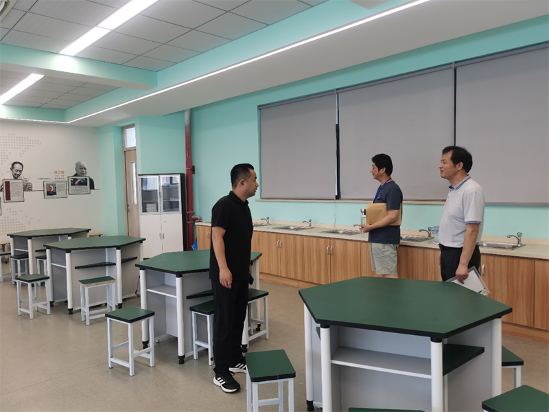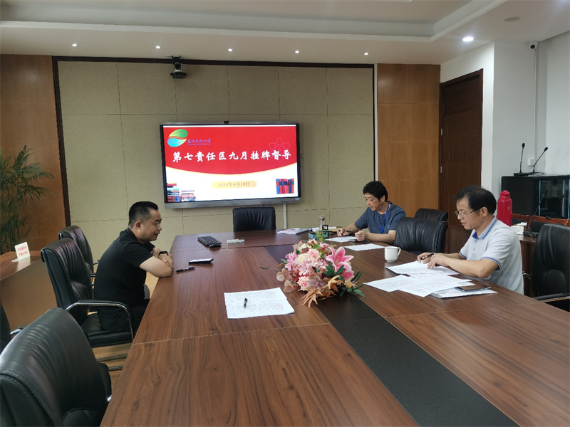 在会议室,两位督学和校领导交谈,了解我校学生课业负担、课外培训情况,教辅资料征订落实情况;关注校园及周边安全检查工作情况;查看资料,进一步了解我校“双减”落实情况和新课程新教材培训情况、学生关爱工作情况等。