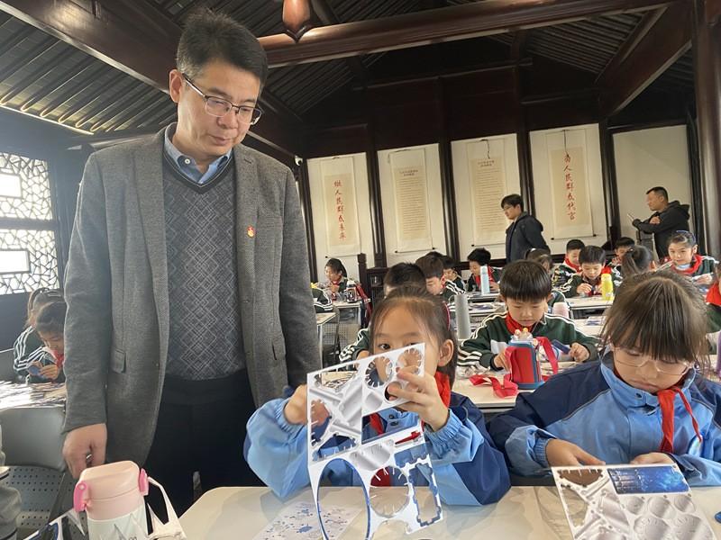 在参观过程中,少先队员们还亲手体验了制作与杨嘉墀院士科学事业相关的简易模型。在屠金良书记的指导下,他们小心翼翼地拼接零件,每一个步骤都充满了探索的乐趣和科学的魅力。通过动手实践,少先队员们不仅加深了对科学知识的理解,更体会到了科学研究的艰辛与不易。