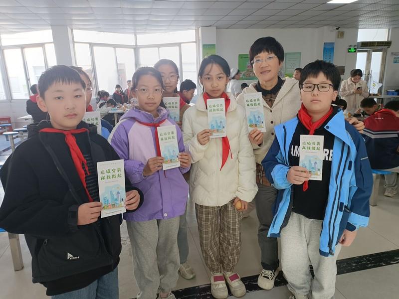 为了让垃圾分类的知识更加生动有趣,李校长还特地准备垃圾分类知识宣传册,从可回收物、有害垃圾、厨余垃圾、其他垃圾等四大类别的定义讲起,到如何正确区分各类垃圾、以及垃圾分类后的处理流程,每一个细节都讲解得既清晰又易懂。她还结合日常生活中的实例,引导学生们思考并讨论,如何在家中、学校乃至社区更好地实践垃圾分类。
