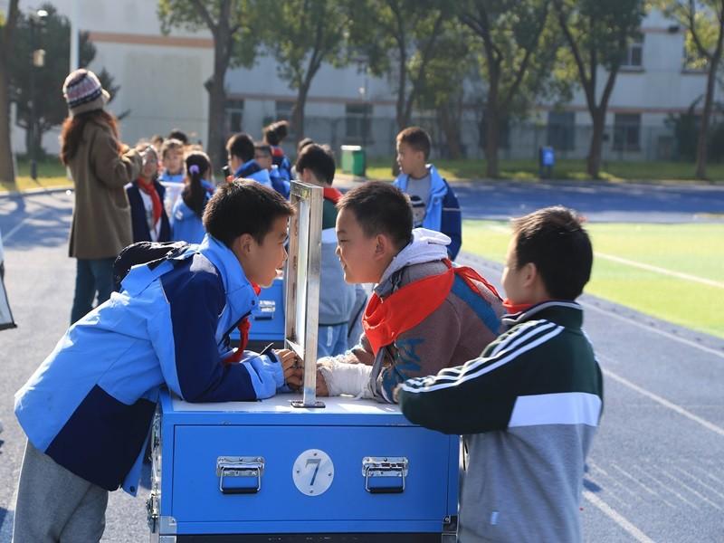 开幕式中“嘉兴靓典科学实验室”为学生们带来了异彩纷呈的科学表演秀,让日常所见的物品在科学法则之下都展现出非凡的魔力效果。一个个梦幻神奇的节目让学生们目不暇接,在亲身参与的过程中感受到了科学的神奇与魅力。开幕式结束后,以班级为单位轮流进行了现场的体验活动。在体验期间学生们化身为真正的探秘少年,去探索科学世界的奥秘。“菲涅尔透镜”“手摇发电”“反转镜像”“穿墙而过”等一个个微型的实验让同学们过足了“科技瘾”。