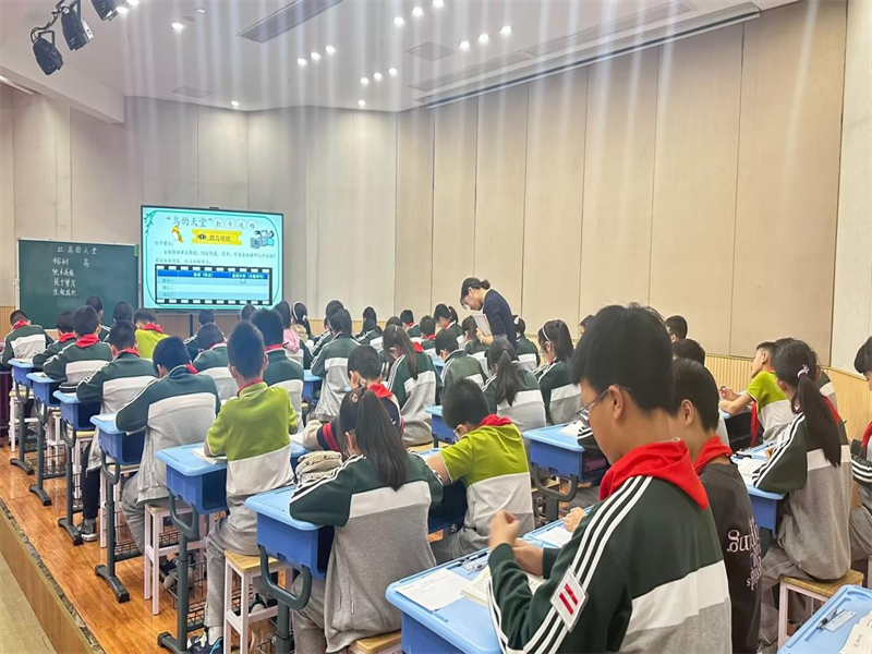 下午第一节课,顾唯娟老师执教课文《鸟的天堂》,首先,顾老师引入大情境—完成打卡任务,让学生深入文本,品析文本语言。在榕树的片段里,通过多、茂盛,感悟榕树生命力的旺盛,接着感悟鸟的多,从而发现“鸟的天堂”的确是鸟的天堂。让学生在完成任务的过程中,素养有了提高,最后通过练笔,训练动静结合的手法,让学生学有所依,充分体现了“教—学—评”一致性。