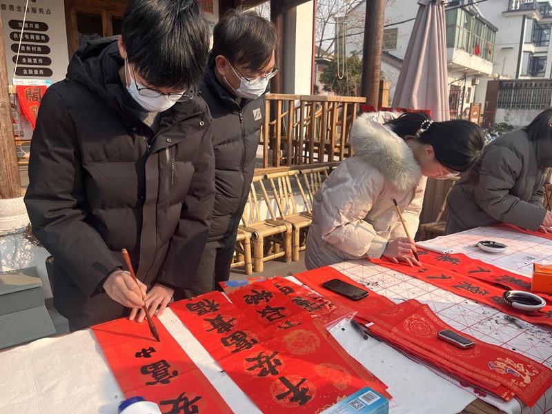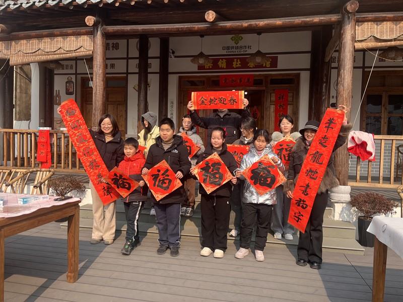 在这次活动中,学生们拿起毛笔,一笔一划地书写着福字和对联,将传统的年味融入到了此次公益行动中。活动现场,一张张红纸上跃动着学生们用心书写的“福”字,每一笔都饱含着对新年的美好祝愿。这些福字不仅装饰了校园,更被学生们带回家中,贴在了门上,为家人带去了一份来自学校的特别祝福。