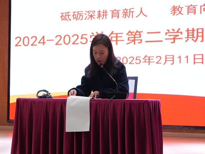 会上,德育处主任钟郭梅老师首先对上学期班主任工作进行了回顾与总结,肯定了各班级在德育工作、班级文化建设、学生习惯养成等方面取得的成绩,同时也指出了存在的问题与不足,并提出了针对性的改进建议。对新学期班主任工作进行了全面部署,在学生管理方面,强调要关注学生的心理健康,做好开学前的心理摸排和疏导工作,帮助学生尽快适应新学期的学习生活节奏;加强安全教育,通过主题班会、日常提醒等方式,强化学生的安全意识,确保校园安全无事故。在班级文化建设上,鼓励班主任结合班级特色和学生特点,打造具有个性化的班级文化,营造积极向上的班级氛围。