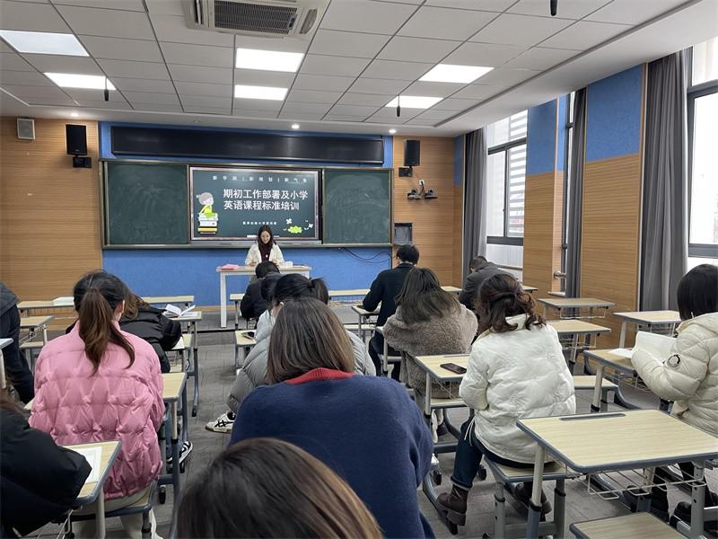 3月5日下午,我校全体英语组成员集中爱智楼微格教室开展教研活动。本次活动主题为“期初工作部署及小学英语课程标准培训”,旨在明确新学期教学工作,聚焦落实新课标,开拓教学新思路,提高教育教学质量。