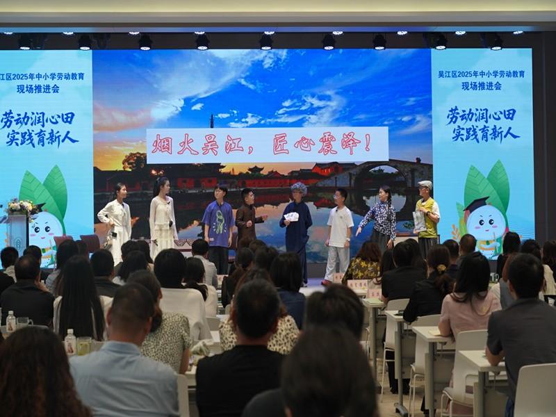 震泽实验小学带来的“非遗传承”主题三话表演,将现场氛围推向高潮。小演员们用精湛的演技,重现震泽四碗茶、震泽小吃等传统技艺的匠心传承历程。他们饱含深情的演绎,让观众深刻感悟到,劳动不仅是技艺的延续,更是对文化根脉的深情守护与赓续。