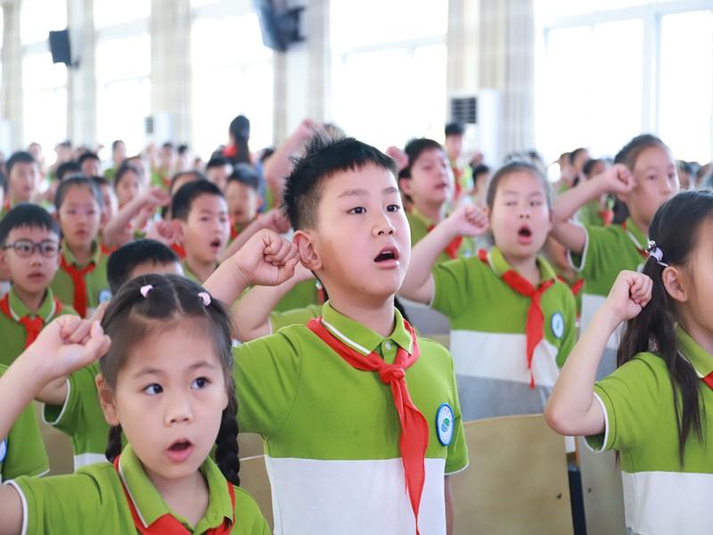 最后,大队辅导员郑老师带领全体少先队员呼号,“准备着:为共产主义事业而奋斗!”“时刻准备着!” 的口号声响彻全场。
