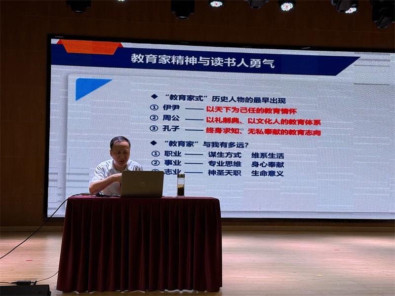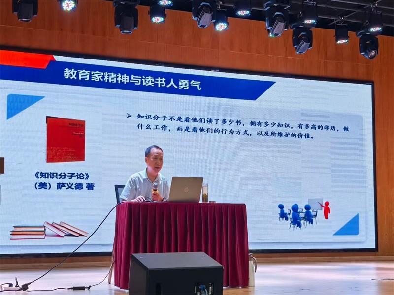 而读书人勇气,恰好为这种精神筑牢了不可或缺的根基。在此基础上,余主任抛出“‘教育家’与我有多远?”这一深刻问题,引发全体教师的深度反思,并引用其推崇的学者许倬云先生的经典语录为教师们解答困惑,引导大家从仰望教育家转向思考如何向教育家靠近。之后,他对“家”的概念进行系统梳理,促使教师们深入探寻两大现实命题——当下中国教育面临的核心问题是什么?为何当前需着重“唤醒教育家精神”。