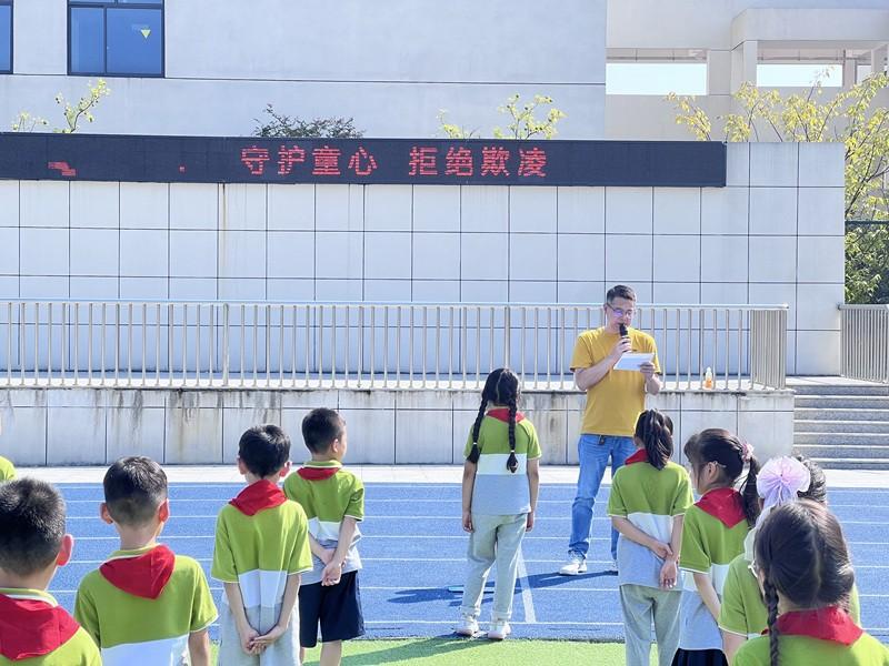 我校利用升旗仪式契机,面向全体师生开展了以“守护童心 拒绝欺凌”为主题的国旗下的讲话,呼吁全体师生共同关注校园安全问题,坚决抵制欺凌行为,营造友善、尊重、安全的成长环境。