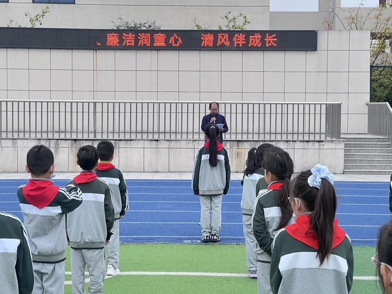 吴江区震泽实验小学全体师生在操场隆重集会,举行了以“廉洁润童心 清风伴成长”为主题的升旗仪式。