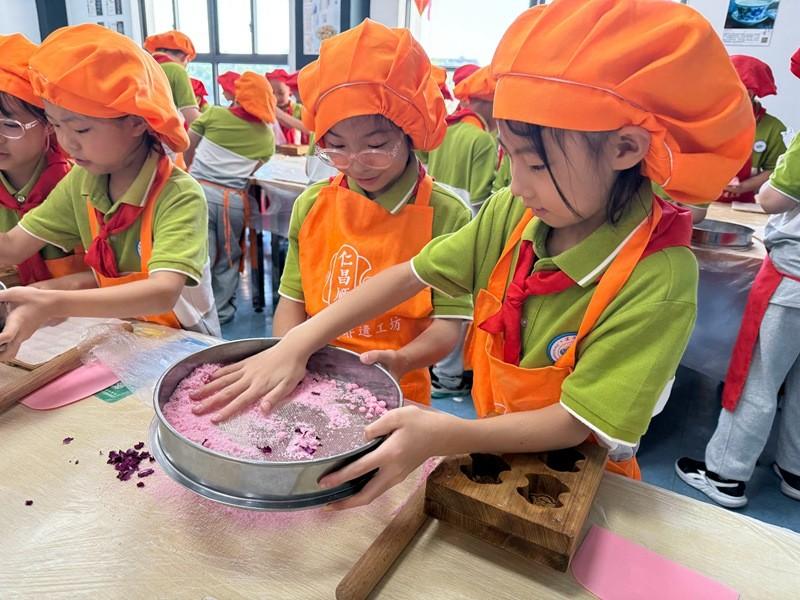 10月10日下午,震泽实验小学三(6)中队的少先队员们怀着对传统文化的好奇与向往,走进仁昌顺非遗课堂,沉浸式学习苏式糕点制作技艺,亲手制作迷你定胜糕,在实践中感受非遗文化的独特魅力。