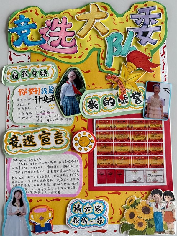 本次竞选严格依据《中国少年先锋队章程》《少先队改革方案》等规定,参选对象为四、五年级全体少先队员,以中队为单位推荐 1 名候选人,推荐条件涵盖纪律表现、服务意识、学业能力、活动参与度等方面,要求候选人纪律性强、品学兼优,热心少先队工作,且经中队全体队员投票产生,在同学中威信高。
