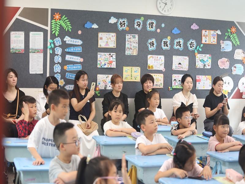伴随着上课铃声的响起,语文、数学、英语等学科轮番登场,家长们沉浸式体验到了孩子们课堂学习的点滴成长以及老师们别样的教育风采。孩子们高举的小手,自信的发言,生动的口号,成为校园里美好的秋日风景。