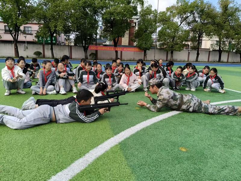操场秒变“战场”,军事体验点燃少年豪情。射击姿势瞄准、模拟手榴弹投掷、近距离参观装甲车……每一项训练都充满挑战。汗水与尘土在校服上混成独特的“迷彩”,队员们却个个精神抖擞,笑出一排白牙:“原来坚持过后,疼也能开出成长的花。”训练间隙,教官还会结合关工委提供的红色故事,讲述军人保家卫国的事迹,让队员们在体验中感悟责任。
