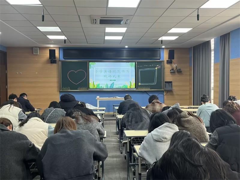 为进一步提升教师书写素养,夯实教学基本功,营造规范、美观的书写氛围,11月12日下午,我校英语教研组以“规范书写·以字育人”为主题,组织开展了专题教研活动。全体英语教师齐聚一堂,围绕牛津棒棒体书写规范展开深度学习与实践,通过标准示范、现场书写、作品展示等环节,共同探索英语书写教学的有效路径。