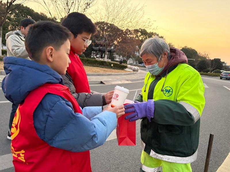 一杯姜茶暖江城 震小队员传温情 ——震泽实验小学少先队员参与新年公益行动