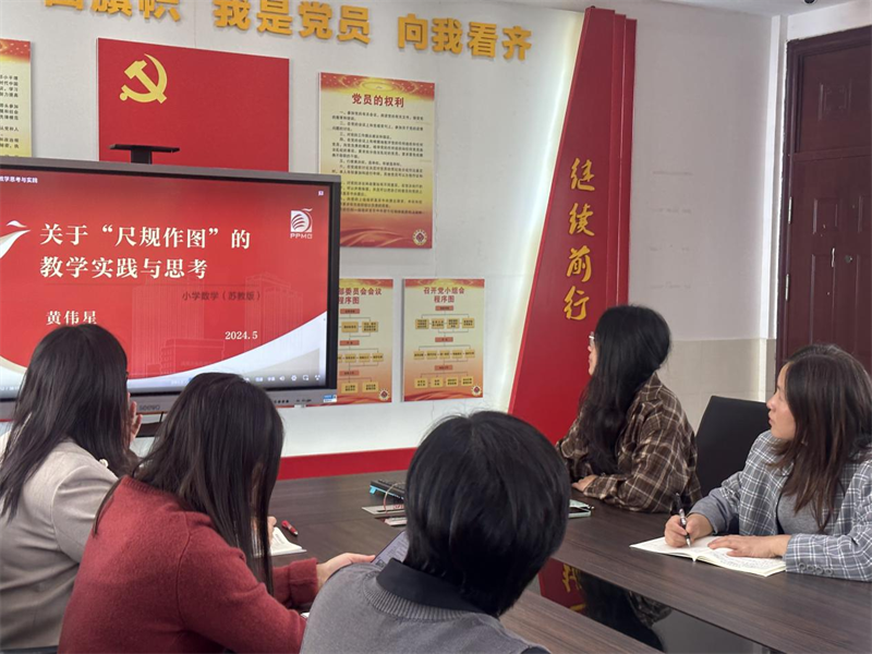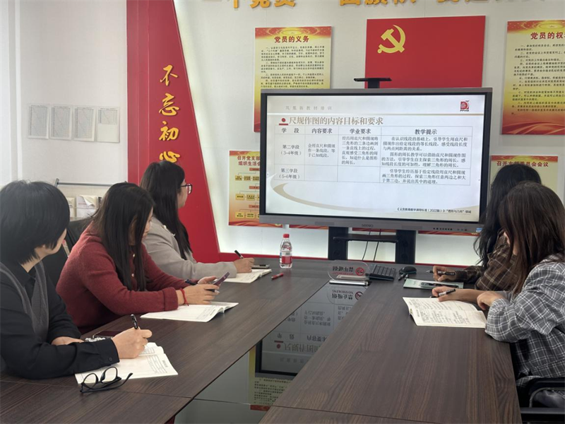 为深化新教材实施,提升数学教师几何教学能力,10月23日下午1时,震泽实验小学组织全体数学教师开展专题教研活动,主题聚焦“尺规作图的教学思考与实践”。1-2年级教师于东校区三楼党员活动室,3-6年级教师于西校区爱智楼二楼微格教室同步参与,通过案例研讨与实践探索共促教学创新。